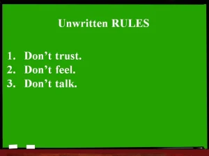 I cite an article by Kerry Nenn in this blog. Although the article is written for adult children of alcoholics, the rules apply to all types of dysfunctional systems. This is the article: Nenn, K. (September 21, 2023). “3 Rules Carried Over by the Adult Children of Alcoholics”. American Addiction Centers.