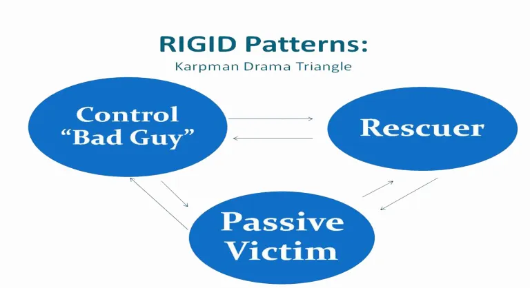The work of Dr. Stephen Karpman (1968) is useful to recognize your pattern of relating. He points out that we move from one role to another in what is known as the “Karpman Drama Triangle.” (Don’t you love the name?) The diagram is adapted from his work.